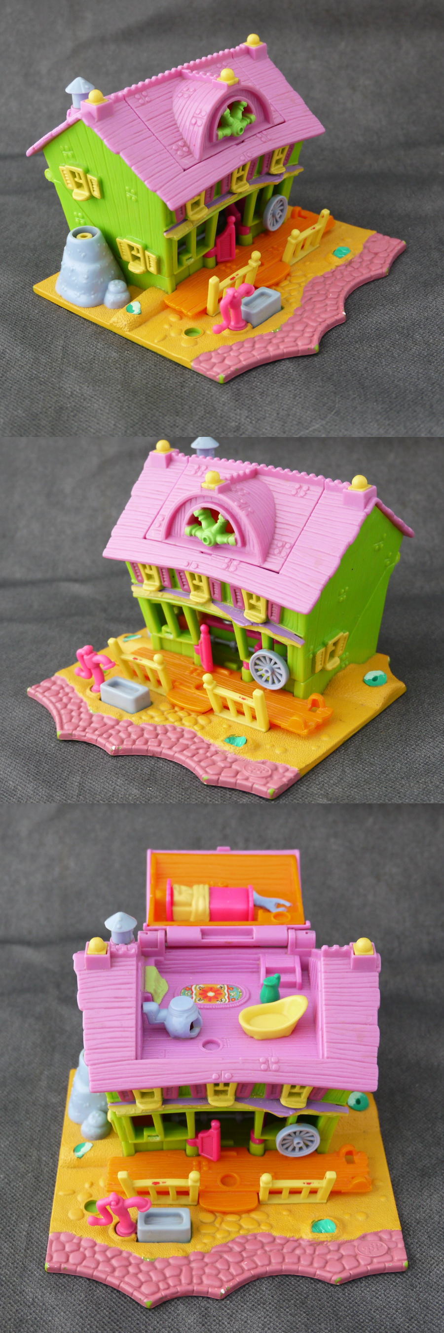 仕掛け:家の左のスイッチを押すと電気が点きます。ステージが回転します。