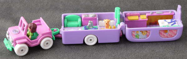 車で動物の診察室を牽引しています。