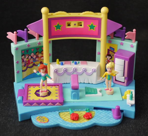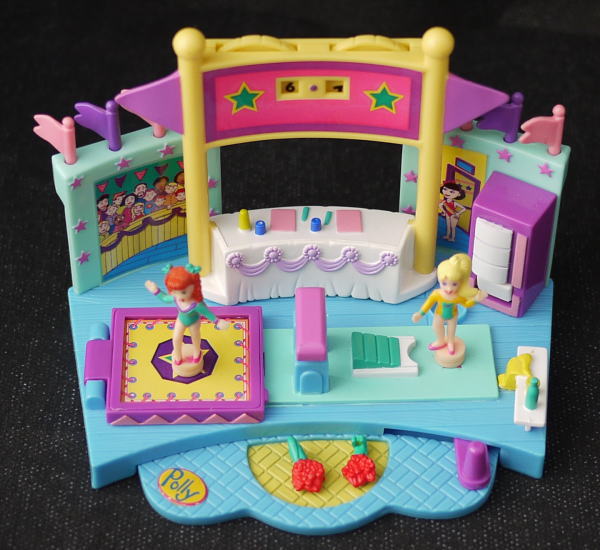 仕掛け:★の所に人形を置き手前のレバーを左に上手に動かすと人形が回転して左のマットに着地します。