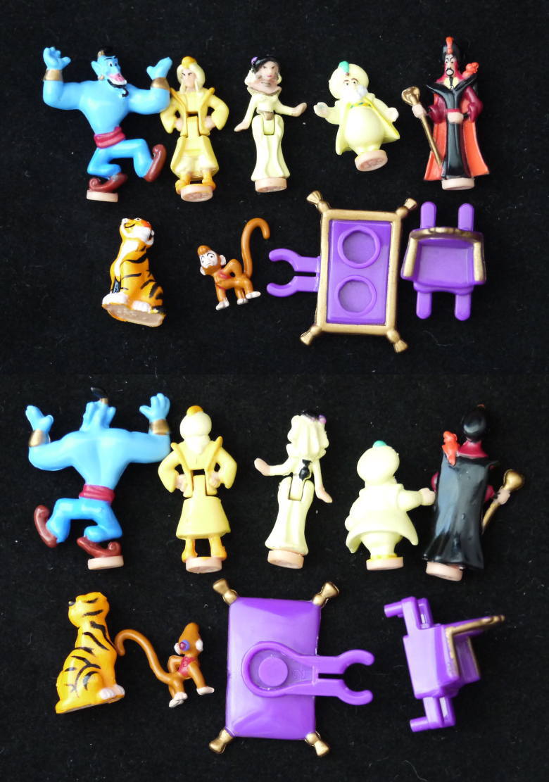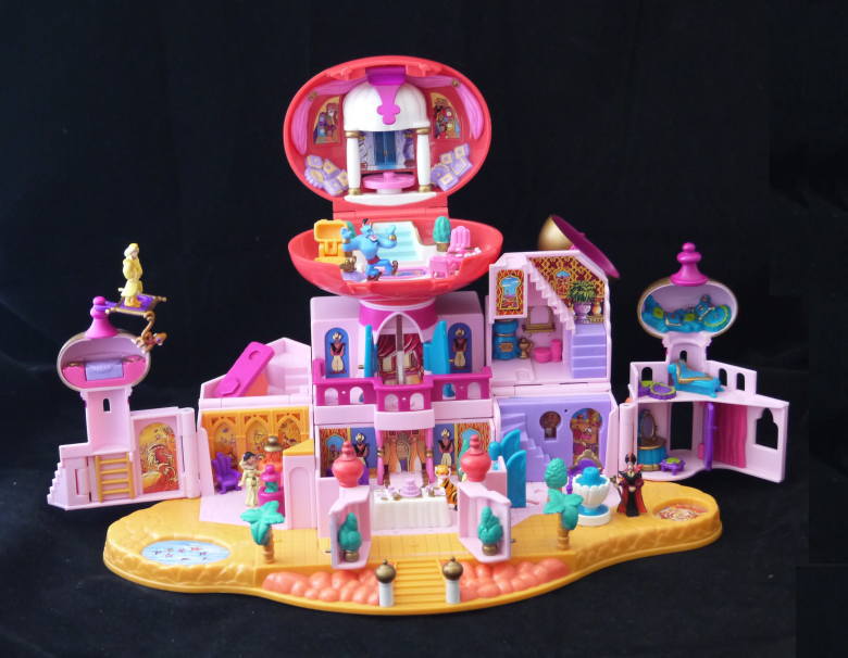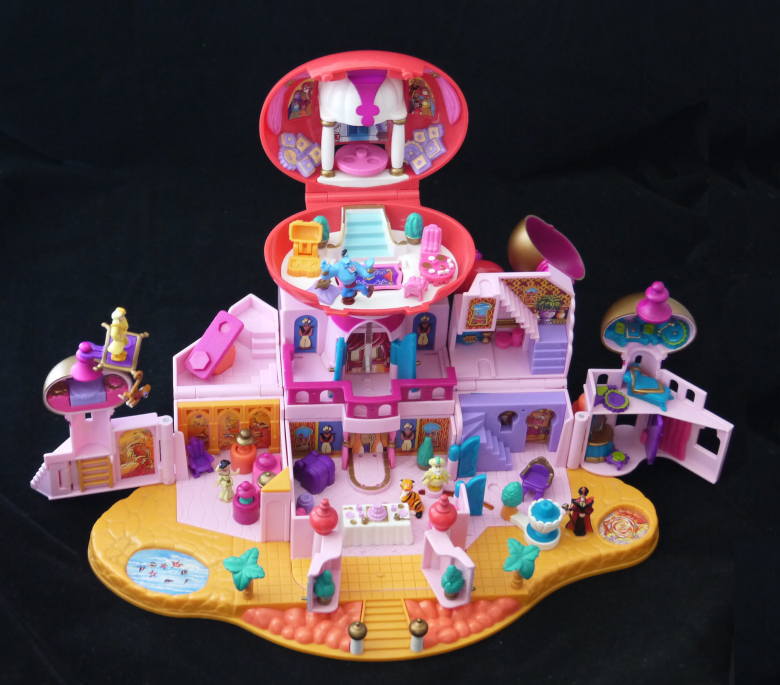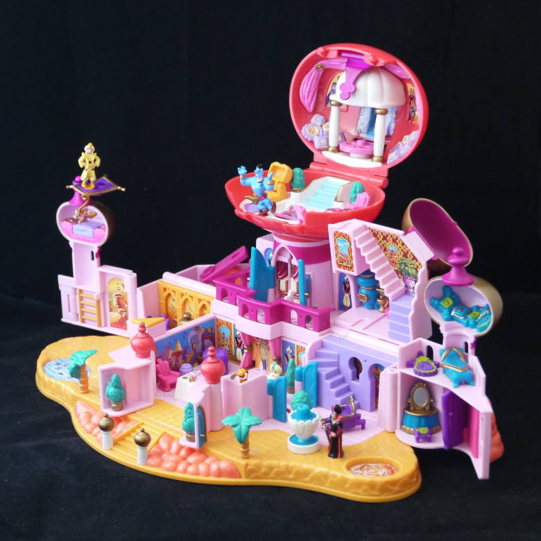 ◯ ポーリーポケットディズニーシリーズ、 アラジン ジャスミンの住むアグラバーの宮殿です。 ◯お城の壁が左右に広がります。一番上の宮殿のドームが取り外せ、それ自体で遊ぶことが出来ます。 ◯人形はアラジン、ジャスミン、ジニー、ジャファー、アブー、スルタン、ラシャー、他に魔法の絨毯などが入っています。 大きさは約30cm×15cm×20cmです。