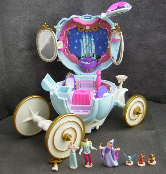 ◯馬車のまん中より上に開くと中が見えます。内部には椅子、ふたの付いた箱、鏡などがあります。上の部分の鏡が左右に開きます。 ◯①台を取り付けダイヤルを回すとシンデレラが動きます。②横のダイヤルを回すとシンデレラと王子様が回りながらダンスをします。③馬車のドアは鍵で開けることが出来ます。その他馬車の下に小物入れが付いています。