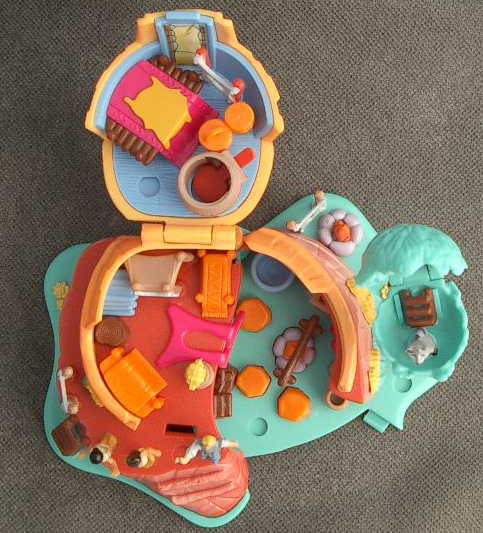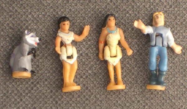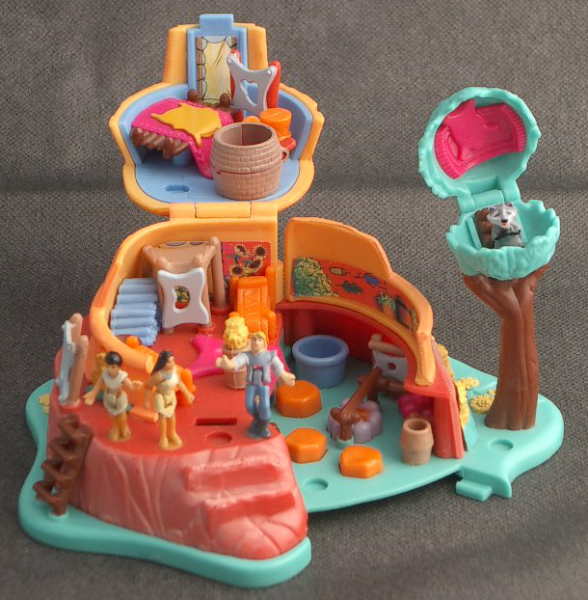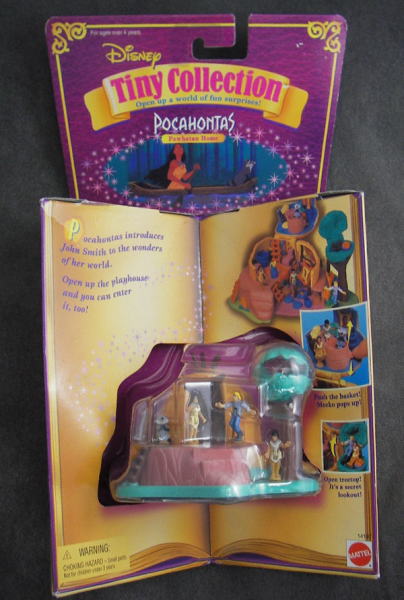 ◯上は寝室。下は居間。部屋を横に引き出すとキッチンが出てきます。 ○木の上の部屋が開きます。ミーコーをバスケットに入れレバーを押すと上に出てきます。 ◯人形はポカホンタスとジョン・スミス、ナコマ、ミーコの4体。 ○大きさは約10cm×10cm×8cmです。