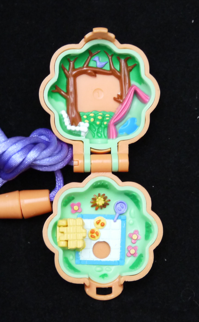 首に掛けられるように紐が付いています。中に写真を飾れます。