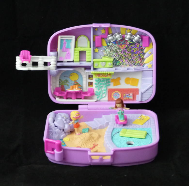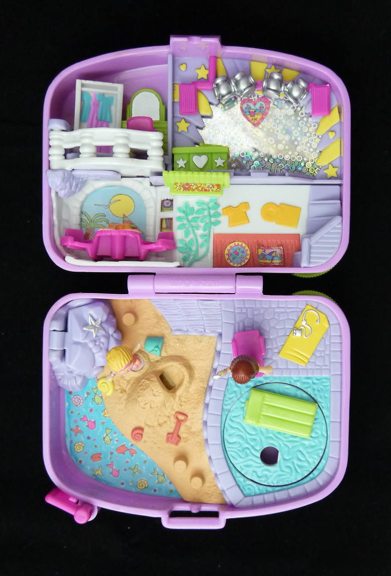 上:ディスコ、ベッドルーム、カフェなどがあります。 下:ビーチとプール。などがあります。 仕掛け:ベットルームのバルコニーが広がります、ベットが動きます。ディスコの後ろのミラーが回ります。 カフェのテーブルが外れます。 大きさ:横幅約11cm