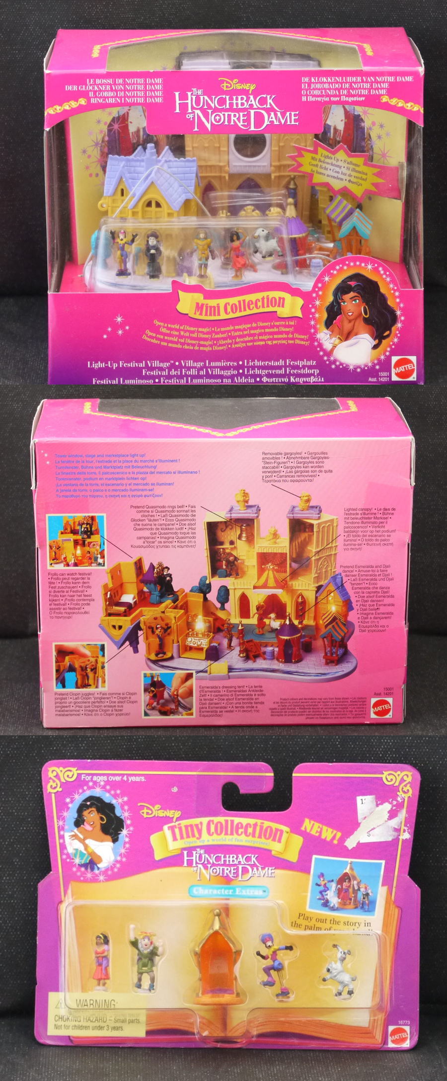 ◯人形はカジモド、エスメラルダ、フロロー、フィーバス、クロパン、ガーゴイルのユーゴー、ヴィクトル、ラヴァーンの3体、ジャリ、カゴ。