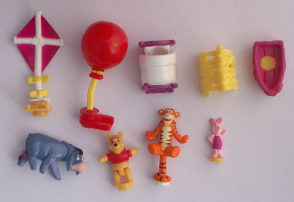 ◯付属品はプーさん、イーヨ、ピグレット、ティガーと赤い風船、凧、ボート、テント、ベットが付いてます。